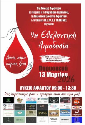 9η ΕΘΕΛΟΝΤΙΚΗ ΑΙΜΟΔΟΣΙΑ ΤΟΥ ΓΕΛ ΑΦΑΝΤΟΥ