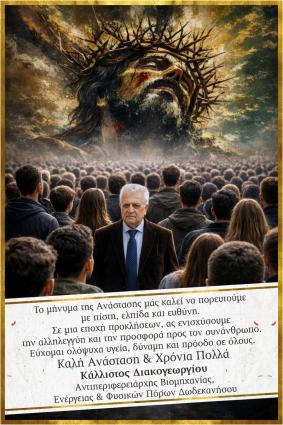 Για το φετινό Πάσχα δεν επέλεξα μια συνηθισμένη εικόνα αλλά εκείνη που αποτυπώνει με έντονο συμβολισμό δύο παράλληλους κόσμους.