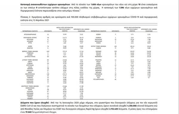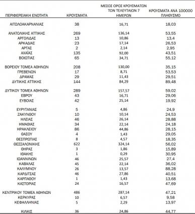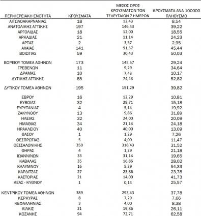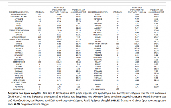 Με βάση τα επιβεβαιωμένα κρούσματα των τελευταίων 7 ημερών, 101 ...