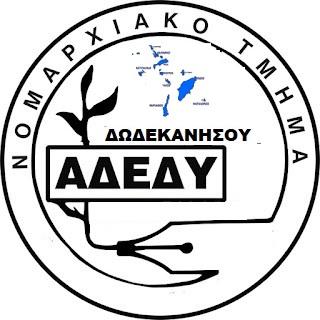 ΑΝΑΚΟΙΝΩΣΗ ΝΟΜΑΡΧΙΑΚΟΥ ΤΜΗΜΑΤΟΣ Α.Δ.Ε.Δ.Υ. ΔΩΔΕΚΑΝΗΣΟΥ