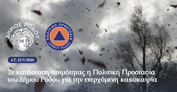 Σε κατάσταση ετοιμότητας η Πολιτική Προστασία του Δήμου Ρόδου για την επερχόμενη κακοκαιρία