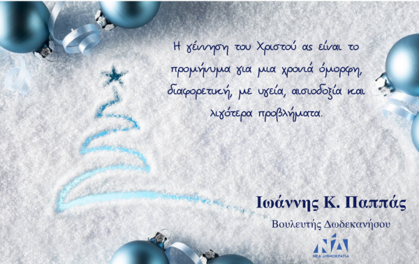 Χριστουγεννιάτικες ευχές του Βουλευτή Δωδεκανήσου Ιωάννη Παππά