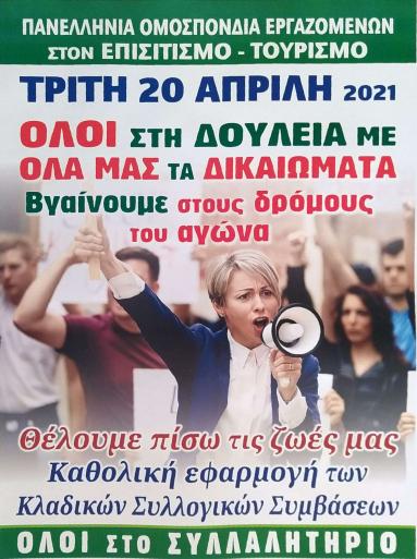 Η τοπική κοινωνία της Ρόδου αναγνωρίζει ότι θετικά αποτελέσματα μπορούν να προκύψουν μονό από τις δράσεις του επίσημου κλαδικού Σωματείου, το Σωματείο Ξενοδοχοϋπάλληλων Ρόδου, γι’ αυτό καλούμε όλους τους συνάδελφους ξενοδοχοϋπάλληλους και τους εργαζόμενους σε επισιτισμό τουρισμό να συμμετέχουν στην συγκέντρωση μας για το συλλαλητήριο του κλάδου, που προκηρύχτηκε από την Ομοσπονδία Επισιτισμού Τουρισμού και να δώσουν το παρόν την Τρίτη 20 Απριλίου 2021 έξω από το Εργατικό Κέντρο Ρόδου ώρα 11:00πμ.