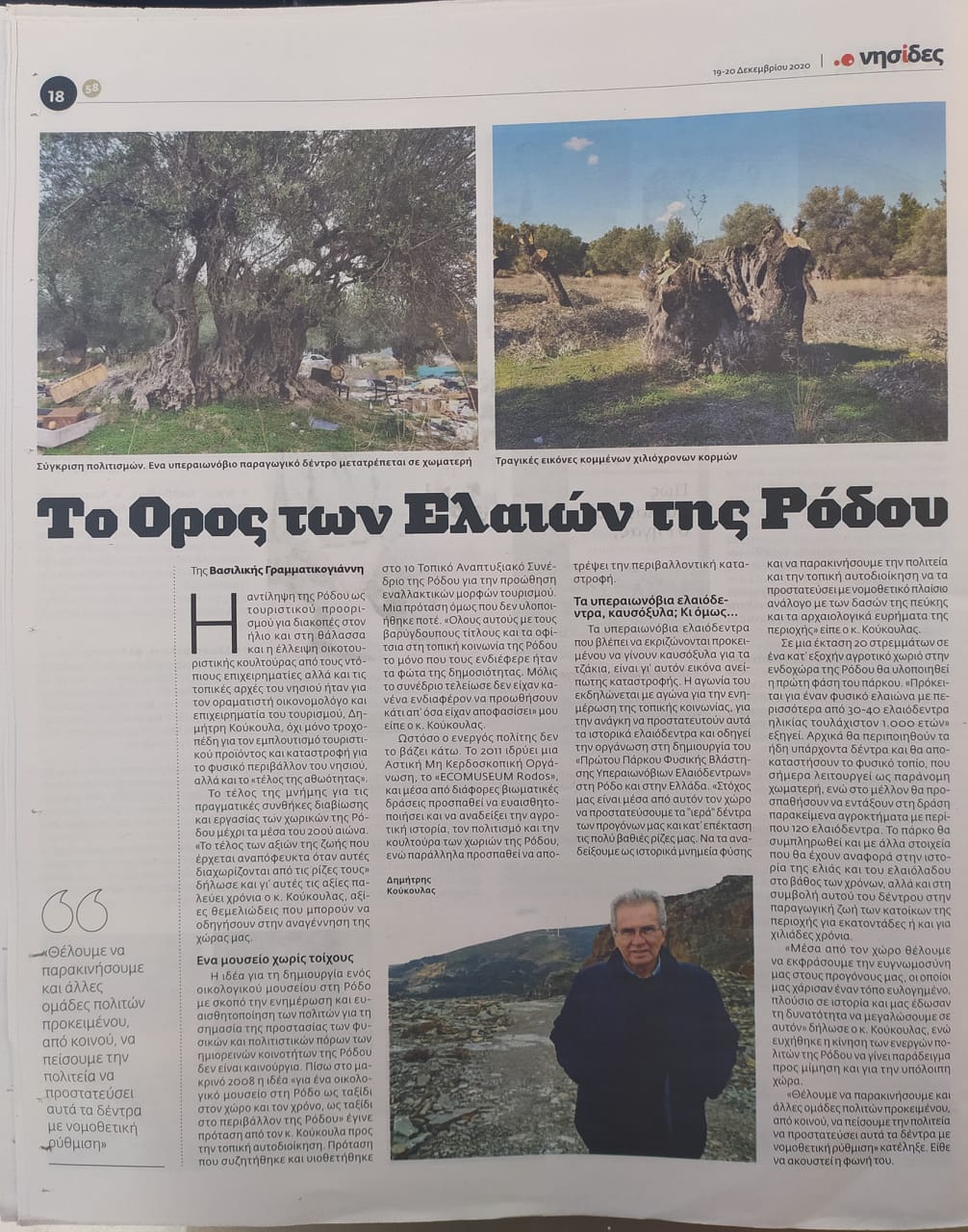 Συνέντευξή του Δημήτρη Κούκουλα στην  εφημερίδα των Συντακτών με τίτλο το " Όρος των Ελαιών" η οποία δημοσιεύθηκε την Κυριακή 20.12.20