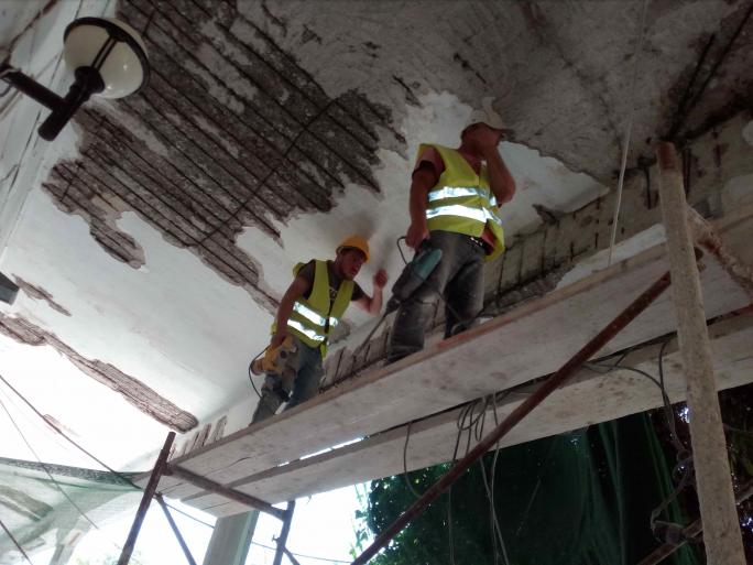 Δελτίο Τύπου-Θέμα: Αναβαθμίζεται η Νέα Αγορά με την εκτέλεση νέων έργων του Δήμου Ρόδου -Πλήρες σχέδιο βελτίωσης της εικόνας της Νέας Αγοράς της Ρόδου στο Μανδράκι και αναβάθμισης της λειτουργίας της, υλοποιεί ο Δήμος Ρόδου. Σειρά έργων που εκτελεί ο Δήμος τον τελευταίο καιρό αποσκοπούν στην αλλαγή της σημερινής κατάστασης του κεντρικότερου σημείου της πόλης της Ρόδου και του πλέον εμβληματικού εμπορικού κέντρου του νησιού μας. Για την προστασία της ομαλής λειτουργίας του, οι εργασίες εκτελούνται σταδιακά, με επιμέρους, μικρής κλίμακας, εργολαβίες. Πρόσφατα ολοκληρώθηκε το έργο «Συντήρηση Νέας Αγοράς» που αφορούσε κυρίως το τμήμα της κεντρικής εισόδου. Συγκεκριμένα έγιναν καθαιρέσεις και ανακατασκευές σε κλίμακες, μωσαϊκά, σαθρά επιχρίσματα στην κεντρική είσοδο και τον κεντρικό τρούλο και εξωτερικά αυτού. Ακόμη στα γραφεία του ορόφου έγιναν επισκευές σαθρών επιχρισμάτων καθώς και συντήρηση και χρωματισμός των ξύλινων κουφωμάτων. Σε εξέλιξη αυτή τη στιγμή βρίσκεται το έργο «Αποκατάσταση Περιστυλίων Νέας Αγοράς- Α’ φάση», που αφορά στην επισκευή του περιστυλίου στο εσωτερικό βορειοανατολικό τμήμα του αίθριου της Νέας Αγοράς. Περιλαμβάνονται η επισκευή φθορών του φέροντα οργανισμού του κτιρίου, η επισκευή οξειδωμένου οπλισμού και αποκατάσταση του σκυροδέματος καθώς και ενίσχυση με εκτοξευόμενο σκυρόδεμα των πλακών της οροφής και των περιμετρικών δοκών. Μέχρι σήμερα έχει σχεδόν ολοκληρωθεί η καθαίρεση σαθρών σοβάδων καθώς και όλων των σαθρών σκυροδεμάτων, γύρω από τους οξειδωμένους οπλισμούς στις πλάκες και τα υποστυλώματα. Επίσης έγινε πλήρη καθαίρεση τμήματος της πλάκας το οποίο παρουσίαζε πλήρως οξειδωμένους οπλισμούς καθώς και πλήρως αποδιοργανωμένο σκυρόδεμα και το οποίο τμήμα θα ανακατασκευασθεί. Οι αποκαλυμμένοι οπλισμοί προστατεύονται με απαλειφόμενο κονίαμα αντιδιαβρωτικής προστασίας και έχει γίνει προετοιμασία για την υποδοχή του εκτοξευόμενου σκυροδέματος. Τις επόμενες ημέρες ολοκληρώνεται η τοποθέτηση νέου οπλισμού και οι εργασίες εκτοξευόμενου σκυροδέματος. Τέλος, αφού γίνουν επιχρίσματα όπου απαιτείται, προβλέπονται να χρωματισθούν οι επιφάνειες με ακρυλικά χρώματα. Οι εργασίες πρόκειται να ολοκληρωθούν έως τον Οκτώβριο του 2018. Την τρέχουσα φάση παρεμβάσεων ολοκληρώνει το έργο «Μονώσεις Δημοτικών Κτιρίων» που αποτελεί και το σημαντικότερο εκ των τριών, προϋπολογισμού 350.000 ευρώ. Η σύμβαση με τον ανάδοχο υπογράφτηκε την Πέμπτη 29 Ιουνίου και αναμένεται η εγκατάσταση του τις επόμενες ημέρες. Στο έργο προβλέπονται εκτεταμένες καθαιρέσεις εξωτερικών διαβρωμένων επιχρισμάτων, ενανθρακωμένου σκυροδέματος και αποκατάσταση τους, με τον επιμελή καθαρισμό της σκουριάς περιμετρικά του οπλισμού, την επάλειψη με αντιοξειδωτική στρώση στον διαβρωμένο οπλισμό και τη χρήση επιχρισμάτων με ινοπλισμένο επίχρισμα για να προφυλαχτεί από τις ρηγματώσεις. Κατόπιν προβλέπονται μονώσεις και η τελική σφράγιση θα γίνει με βαφή στα χρώματα που ήδη υπάρχουν στην Νέα Αγορά. Τέλος, στο εσωτερικό περιστύλιο στέγαστρο θα κατασκευαστούν ξύλινα πάνελ που θα αποτελούνται από οριζόντιες σανίδες, προκειμένου να καλυφθούν τόσο οι εξωτερικές μονάδες των κλιματιστικών σωμάτων που βρίσκονται εκεί, όσο και οι εξωτερικές μονάδες κλιματιστικών που βρίσκονται στο εξωτερικό περιστύλιο στέγαστρο, ενώ θα ζητηθεί από τους εν