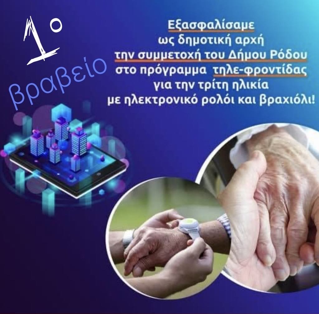 Το «Κλικ Ζωής», με το έξυπνο βραχιόλι που αποτελεί ένα από τα εφτά επιμέρους έργα του χρηματοδοτούμενου προγράμματος Smart Cities, στο οποίο ο Δήμος Ρόδου εντάχθηκε πρώτος πανελλαδικά, το Νοέμβριο του 2022, προσφέρει καθημερινή ασφάλεια σε δεκάδες συμπολίτες μας. Το «Κλικ Ζωής» είναι αποτέλεσμα μιας συνεργασίας με το ΔΟΠ, το πρόγραμμα “Βοήθεια στο Σπίτι”, των ΚΑΠΗ και όσων εργάστηκαν με συνέπεια και πίστη στον στόχο της κοινωνικής προστασίας.