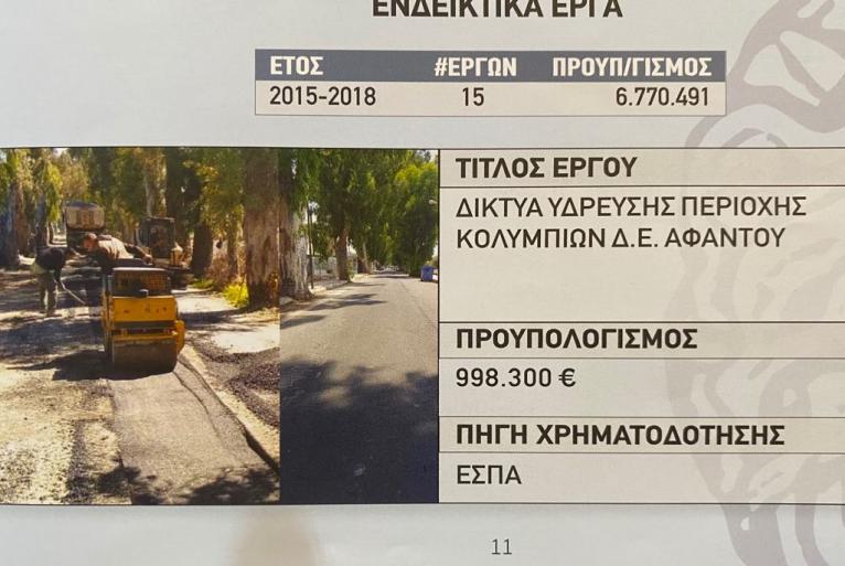 Εδώ και ένα χρόνο λοιπόν ότι έργο και εάν γίνεται είναι προγραμματισμένο από την προηγούμενη δημοτική αρχή με νοικοκυριό και προοπτική για το νησί!! Πάμε λοιπόν στη Δ.Ε.Υ.Α.Ρ. Μπράβο που ανοίξατε δυο τρεις βάνες για να πάει το νερό του φράγματος από τη γέφυρα των Αφάντου προς το κάτω μέρος του οικισμού στην γύρω περιοχή.!!!Μπράβο που το κάνατε, αλλά κάποιοι πριν από εσάς προγραμμάτισαν, σχεδίασαν, αδειοδότησαν, ενέταξαν, χρηματοδότησαν, δημοπράτησαν, πέρασαν ελεγκτικό, εγκατέστησαν εργολάβους και εκτέλεσαν και παρέλαβαν τα τρία έργα με τα οποία εσείς είχατε την τύχη να έχετε νερό όταν γυρίσατε τις βάνες!!! Το 2017 σχεδιάστηκε το έργο των Κολυμπίων και της δεξαμενής της περιοχής.