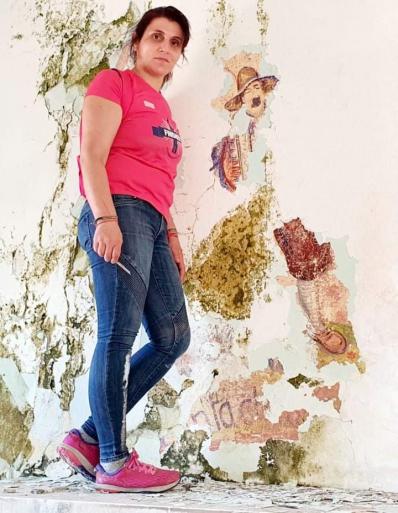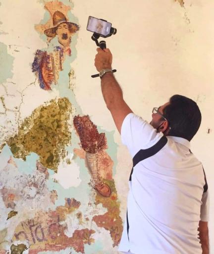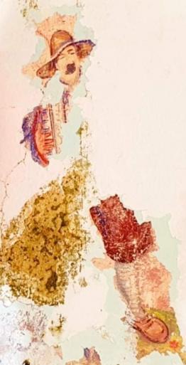 Κατά την περιήγησή μας και στην προσπάθειά μας να διαβάσουμε τους λατινικούς χαρακτήρες πίσω από τον μισογκρεμισμένο σοβά με ένα σάπιο κομμάτι ξύλου αποκαλύφθηκε μία ανδρική φιγούρα που έμοιαζε με ιταλό της εποχής να κρατάει ένα ακορντεόν.