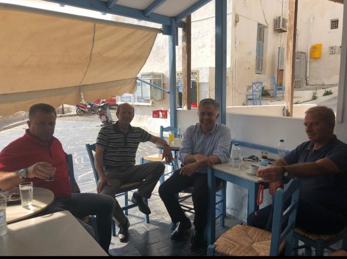 -Στην Αστυπάλαια ο κ. Υψηλάντης συμμετείχε σε σύσκεψη που πραγματοποιήθηκε στο Δημαρχείο παρουσία του απερχόμενου δημάρχου κ. Πανορμίτη Κονταράτου, του νεοεκλεγέντος δημάρχου κ. Νικολάου Κομηνέα, της υποψήφιας δημάρχου στις πρόσφατες εκλογές κ. Μαρία Καμπούρη, καθώς και νεοεκλεγέντων δημοτικών συμβούλων.