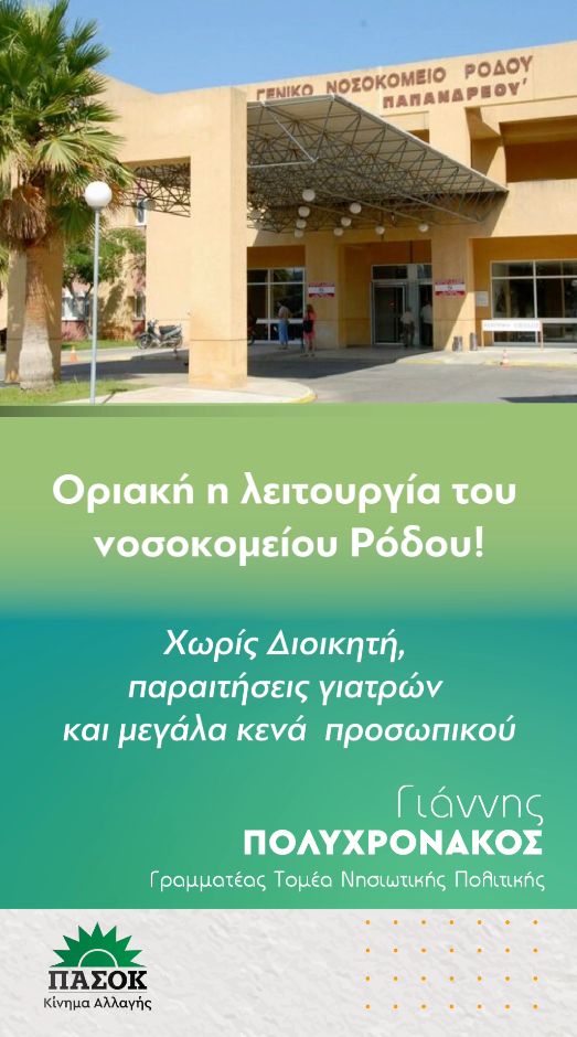 ΄΄ Το νοσοκομείο της Ρόδου που καλύπτει τις ανάγκες όλης της Δωδεκανήσου αλλά και ενός νησιού με χιλιάδες επισκέπτες και τουρίστες, ποτέ άλλοτε δεν βρισκόταν σε τόσο οριακή κατάσταση.