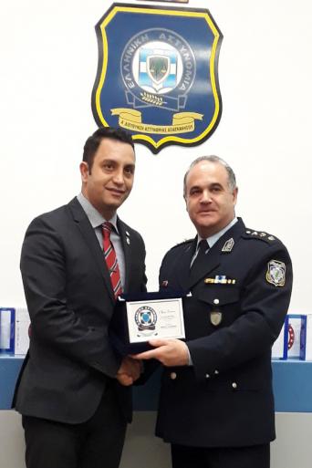 Στο πλαίσιο της εκδήλωσης παράδοσης-παραλαβής, ο Διευθυντής της Α’ Διεύθυνσης Αστυνομίας Δωδεκανήσου Αστυνομικός Υποδιευθυντής κ. Μιχαήλ ΚΑΛΗΩΡΑΚΗΣ, παρουσία Διοικητών Αστυνομικών Υπηρεσιών και επιτελικών στελεχών, τίμησε τον Πρόεδρο κ. Αντώνιο ΓΙΑΝΝΙΚΟΥΡΗ και τα μέλη του διοικητικού συμβουλίου του «Τμήματος ΑΧΕΠΑ Ρόδου» επιδίδοντάς τους αναμνηστική πλακέτα εκφράζοντας τις θερμές του ευχαριστίες για τη γενναιόδωρη και πολύτιμη αυτή προσφορά προς την Ελληνική Αστυνομία.