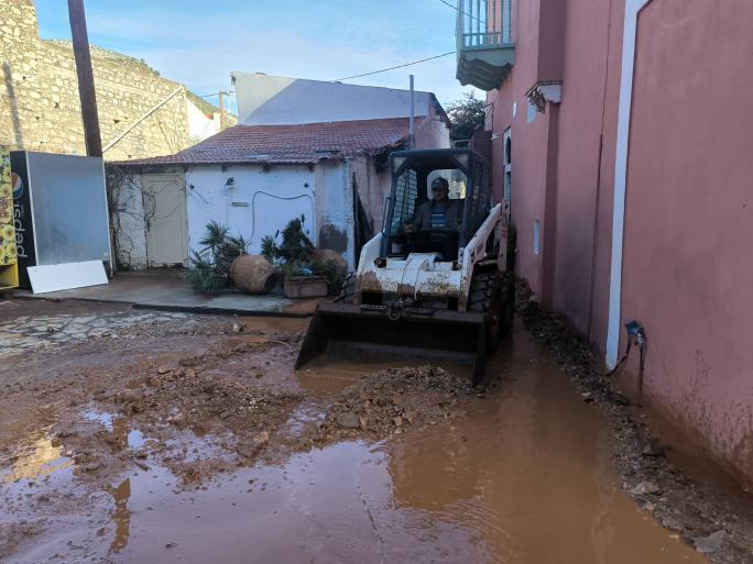 Ξεκίνησαν οι εργασίες καθαρισμού του οδικού δικτύου, καθώς και η αποκατάσταση των ζημιών τόσο στους δρόμους όσο και στα σοκάκια από τα φερτά υλικά που κατέβασε ο χείμαρρος που δημιουργήθηκε και διέσχισε τον οικισμό. Σημαντικές καταστροφές έχουν εντοπιστεί σε πλακόστρωτους δρόμους (ιδίως στην περιοχή Αγίας Τριάδας), ενώ σημειώθηκαν κατολισθήσεις κατά μήκος της οδού προς το αεροδρόμιο.