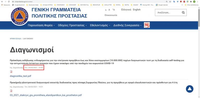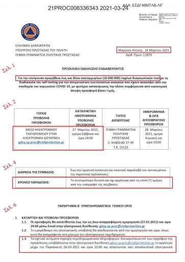 Λίγο πριν γιορτάσουμε τα 200 χρόνια από την έναρξη του επαναστατικού αγώνα για την απελευθέρωση της πατρίδας μας, (24 Μαρτίου και ώρα 23.40), η Γενική Γραμματεία Πολιτικής Προστασίας ανέβασε στο site της διαγωνισμό (φωτό 1) για την προμήθεια 10.000.000 ταχέων διαγνωστικών τεστ, τιμώντας με αυτό τον τρόπο την Εθνική μας εξέγερση. Δίδουμε και σήμερα αγώνες από άλλο μετερίζι.
