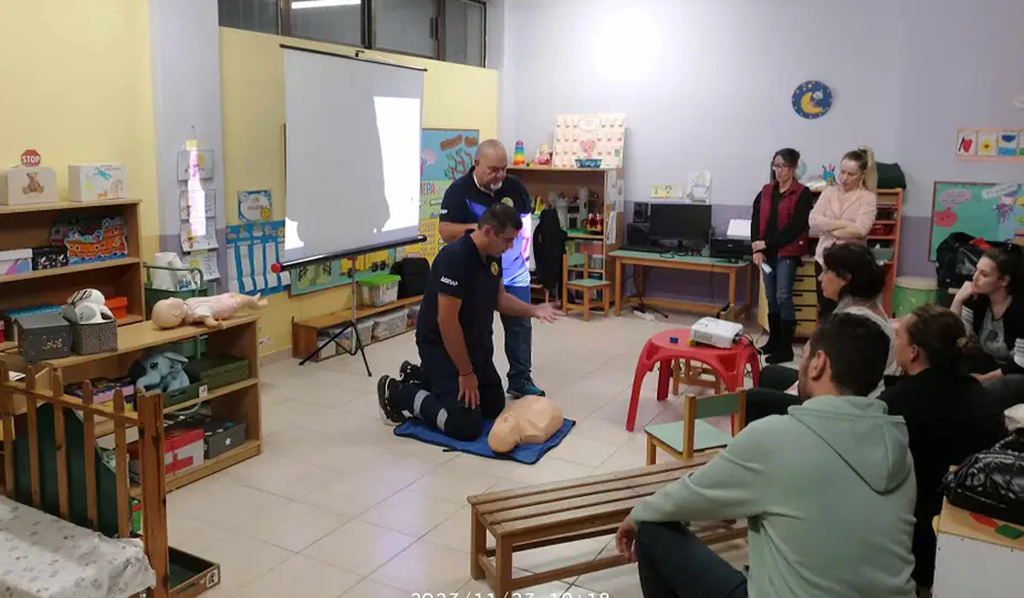 Την Πέμπτη 23 και την Παρασκευή 24 Νοεμβρίου, γονείς των οποίων τα παιδιά πηγαίνουν στο 16ο Νηπιαγωγείο Ρόδου εκπαιδεύτηκαν όχι μόνο στην Καρδιοπνευμονική Αναζωογόνηση αλλά και στην αντιμετώπιση ιατρικών καταστάσεων όπως αυτές των επιληπτικών κρίσεων, της ρινορραγίας, του εγκαύματος, της λιποθυμίας, των κρανιοεγκεφαλικών κακώσεων, αλλά και του εμφράγματος και του εγκεφαλικού.