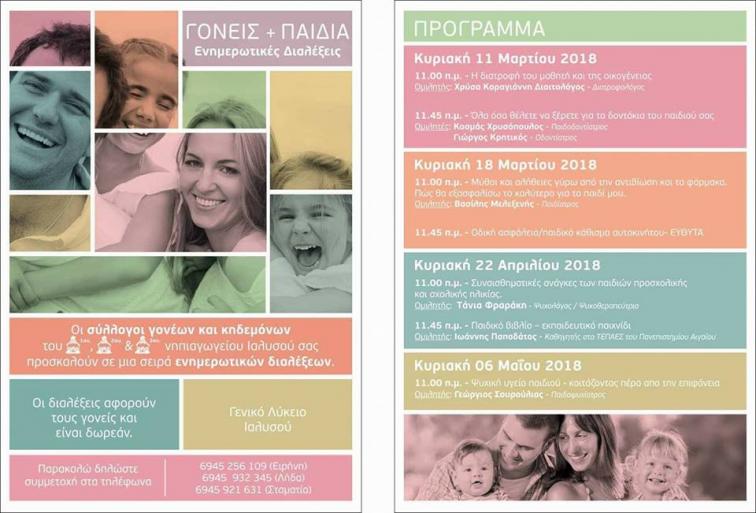 Ενημερωτικές διαλέξεις για γονείς του 1ου, 2ου και 3ου Νηπιαγωγείου Ιαλυσού