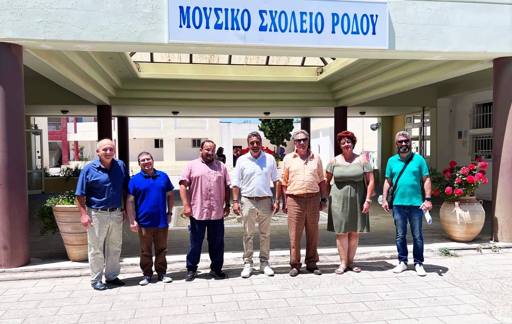 - Το Μουσικό Σχολείο Ρόδου επισκέφθηκε σήμερα, Πέμπτη 9-6-2022, ο αντιδήμαρχος Πολιτιστικών Μνημείων και Υπηρεσίας Δόμησης Δρ. Στέφανος Δράκος, πραγματοποιώντας συνάντηση εργασίας με εκπροσώπους της Διεύθυνσης του Σχολείου, του Συλλόγου Διδασκόντων και του Συλλόγου Γονέων και Κηδεμόνων.