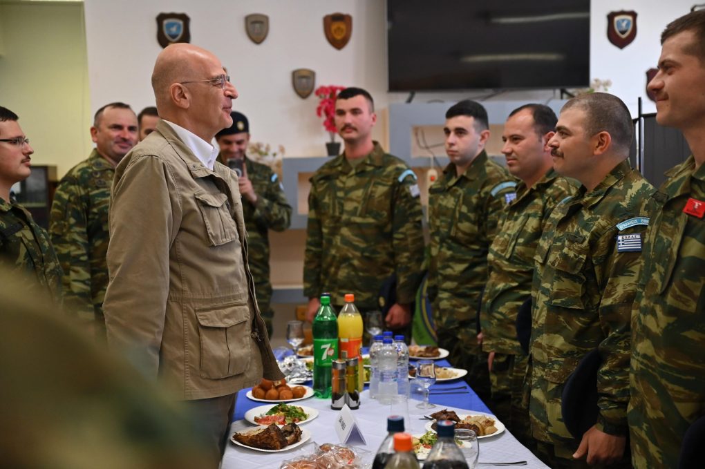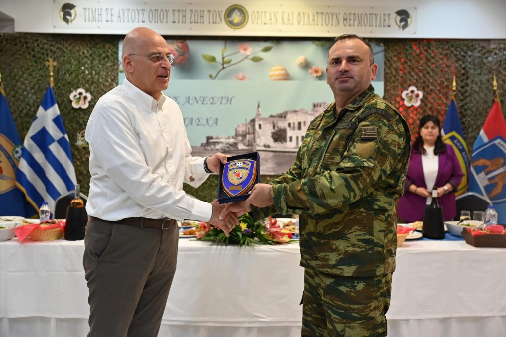 Στη συνέχεια, ο κ. Δένδιας συμμετείχε με τους αξιωματικούς και τους οπλίτες στο πασχαλινό γεύμα στο στρατόπεδο της Διοίκησης ‘Άμυνας Νήσου (ΔΑΝ) Μεγίστης, όπου αντάλλαξε επίσης ευχές για το Πάσχα.