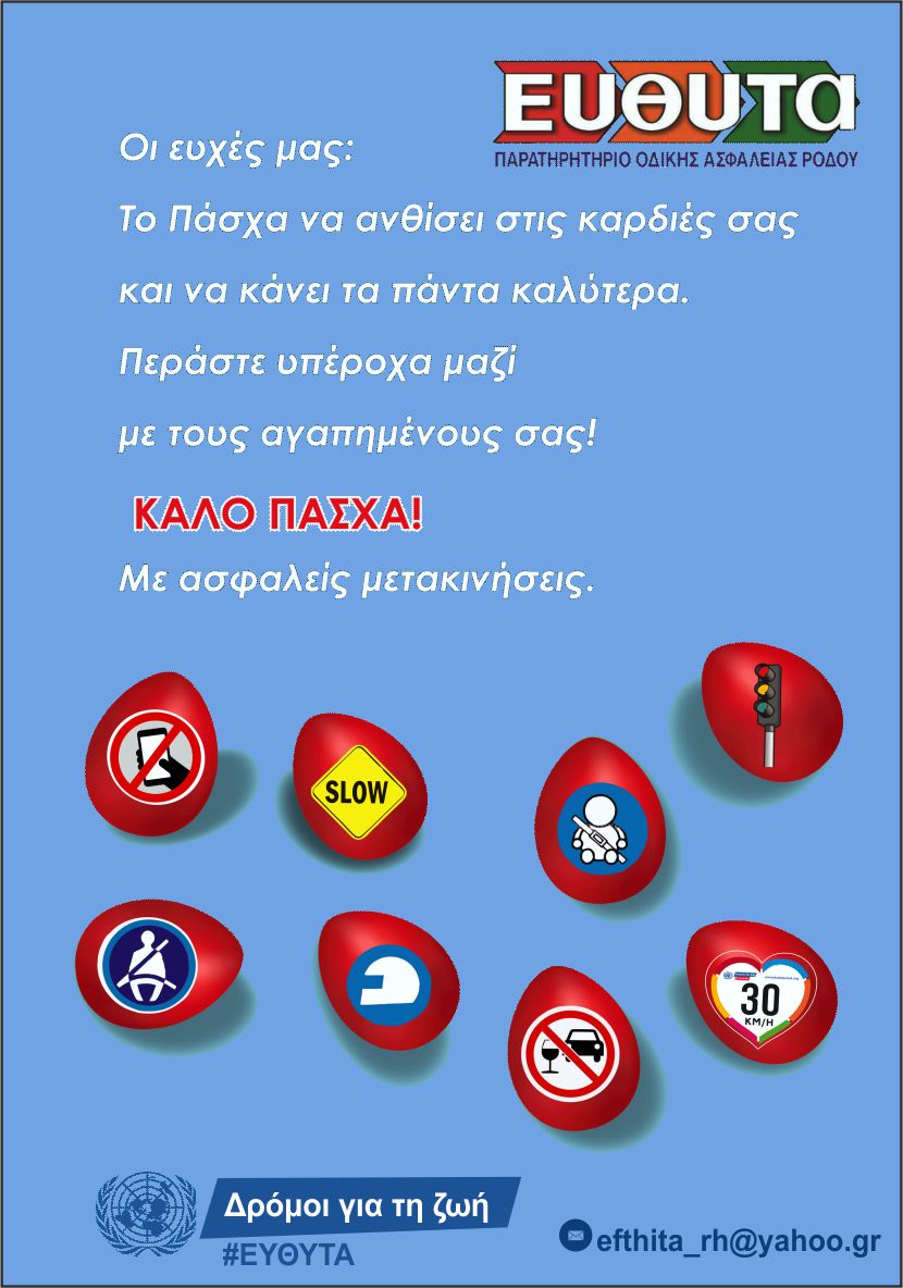 Η ΕΥΘΥΤΑ ΡΟΔΟΥ, εύχεται σε όλους σας ΚΑΛΟ ΠΑΣΧΑ με ασφαλείς διαδρομές.