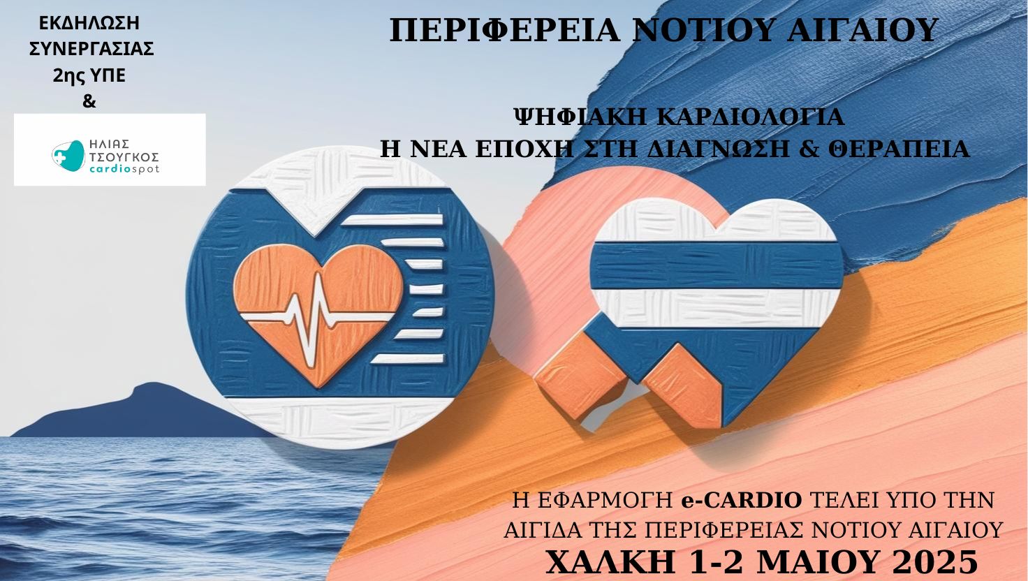 Η επίσημη πρώτη παρουσίαση της εφαρμογής eCARDIO θα πραγματοποιηθεί στη Χάλκη, την Πέμπτη 1 Μαΐου 2025 και ώρα 18:00, στο Περιφερειακό Πολυδύναμο Ιατρείο Χάλκης “Δημήτρης Κρεμαστινός”.