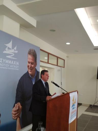 Η ανάγκη ποιοτικής αναβάθμισης του τουριστικού προϊόντος και επιμήκυνσης της τουριστικής περιόδου διατηρώντας παράλληλα τα νησιά μας στους κορυφαίους διεθνείς προορισμούς. Η παγκοσμιοποιημένη τουριστική αγορά σε συνδυασμό με την ανάδειξη εναλλακτικών προορισμών τόσο εντός Ελλάδας όσο και σε γειτονικές χώρες, έχει αυξήσει κατακόρυφα τον ανταγωνισμό. Παράλληλα οι κατά καιρούς διεθνείς οικονομικές κρίσεις σε χώρες που αποτελούσαν παραδοσιακές αγορές, συντελούν στην μείωση και υποβάθμιση του τουριστικού ρεύματος, καθιστώντας την διείσδυση σε νέες αναδυόμενες αγορές επιτακτική. Για εμάς το πανίσχυρο όνομα κάθε νησιού είναι το καλύτερο όπλο για να προωθήσουμε τουρίστες από όλα τα μήκη και τα πλάτη του κόσμου. Με στοχευμένες παρεμβάσεις και οργανωμένη προβολή της Περιφέρειάς μας σε ταξιδιώτες αλλά και σε τουριστικούς πράκτορες μπορούμε να εξασφαλίσουμε κατακόρυφη αύξηση των ποιοτικών τουριστικών αφίξεων σε όλα μας τα νησιά. Οι ανεπαρκείς, αποσπασματικές και εν τέλει λανθασμένες νησιωτικές πολιτικές που εφάρμοσε το κεντρικό κράτος εδώ και δεκαετίες. Το ειδικό φορολογικό καθεστώς και οι μειωμένοι συντελεστές ΦΠΑ θεωρητικά αποτελούσαν ένα αποσπασματικό αντιστάθμισμα σε αυτή την αδικία. Μετά την τελευταία εξίσωση των συντελεστών ΦΠΑ, το ζήτημα όχι μόνο της επαναφοράς του ειδικού καθεστώτος αλλά και η εφαρμογή μίας συνολικότερης νησιωτικής πολιτικής πρέπει να αποτελέσει αντικείμενο μίας διαρκούς διεκδίκησης με όλα τα μέσα. Υπάρχει όμως και μια μεγάλη διαφορά. Εμείς δεν θα επαιτούμε από την Αθήνα. Θα απαιτούμε. Δεν θα κραυγάζουμε αλλά θα πηγαίνουμε με τεκμηριωμένες προτάσεις και εφικτές λύσεις. Δεν θα περιμένουμε από τους άλλους να μας λύσουν τα προβλήματά μας, αλλά θα συνδιαμορφώνουμε τις λύσεις και θα απαιτούμε την εφαρμογή τους. Μην έχουμε την αυταπάτη ότι οι άλλοι θα νοιαστούν για τα δικά μας προβλήματα αν εμείς οι ίδιοι δεν τα αναδείξουμε. Συνειδητοποιώντας τα κοινά προβλήματα και προκλήσεις που συνεπάγεται η νησιωτικότητα, οφείλουμε να αναπτύξουμε κοινή νησιωτική συνείδηση. Γι' αυτό θεωρούμε την Συμμαχία όλων των νησιών της Περιφέρειας Νοτίου Αιγαίου ικανή και αναγκαία συνθήκη για να αντιμετωπίσουμε με επιτυχία τα κοινά προβλήματα. Γι' αυτό επιδιώκουμε να λειτουργήσουμε συνθετικά, συναινετικά, διεκδικητικά με σεβασμό στις διαφορετικές απόψεις και κόντρα στη διάσπαση και στον διχασμό, χωρίς αλαζονικές συμπεριφορές. Γι' αυτό δεσμευόμαστε να αξιοποιήσουμε την τελευταία ευκαιρία μας να απογειώσουμε την Περιφέρεια Νοτίου Αιγαίου αξιοποιώντας όλα τα χρήσιμα προγράμματα και εργαλεία που μας παρέχει η Ε.Ε. Ο Αγώνας αυτός δεν είναι μόνο δικός μας. Αφορά και την επόμενη γενιά, στην οποία οφείλουμε τουλάχιστον να παραδώσουμε έναν τόπο που θα έχει βιώσιμες αναπτυξιακές προοπτικές και επαρκείς φυσικούς πόρους για να τις υποστηρίξει. Έχουμε ιερή υποχρέωση απέναντι στα παιδιά μας, να φανούμε αντάξιοι και όχι κατώτεροι των περιστάσεων. Φίλες και Φίλοι, Το έργο μας δεν είναι εύκολο, αλλά διαθέτουμε το ήθος, την αντίληψη, την προσήλωση και το όραμα για να σχηματίσουμε τη σωστή ομάδα. Εντάσσουμε νέα πρόσωπα, με όραμα και διάθεση προσφοράς ανάλογη των σύγχρονων προκλήσεων πλαισιωμένα όμως και με στελέχη εγνωσμένης εμπειρίας στην άσκηση τοπικής αυτοδιοίκησης. Με αυτό το κράμα πείρας και νεοτερισμού φιλοδοξούμε να δημιουργήσ