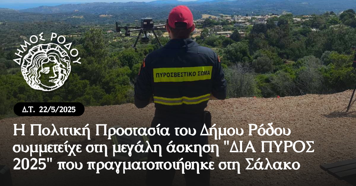 Η Πολιτική Προστασία του Δήμου Ρόδου συμμετείχε στη μεγάλη άσκηση «ΔΙΑ ΠΥΡΟΣ 2025» που διεξήχθη σήμερα στη Σάλακο με μεγάλη επιτυχία