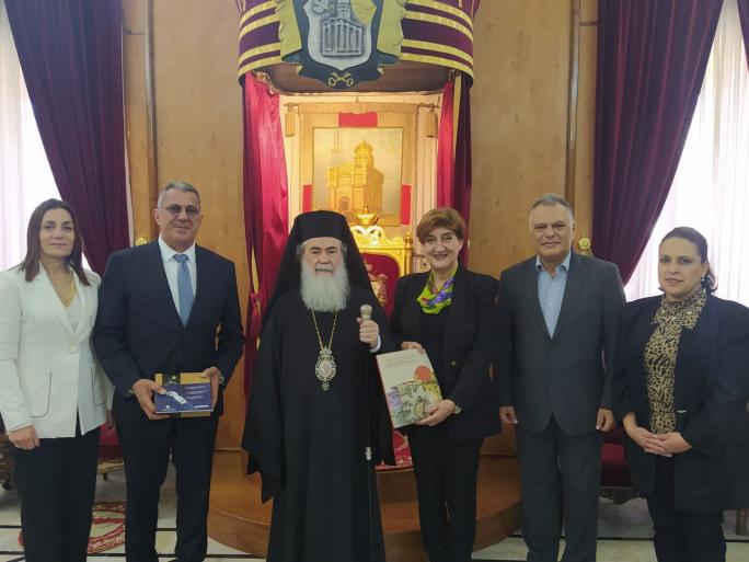 Στο πλαίσιο της αποστολής του Επιμελητηρίου Δωδεκανήσου πραγματοποιήθηκε επίσης επίσκεψη στο Πατριαρχείο Ιεροσολύμων. Κατά τη διάρκεια της συνάντησης με τον Μακαριότατο Πατριάρχη Θεόφιλο Γ’ συζητήθηκαν σημαντικά θέματα που αφορούν τις σχέσεις των δύο χωρών καθώς και ενδεχόμενη συνεργασία μεταξύ των δύο φορέων, κυρίως σε κοινωνικούς τομείς που θα ενισχύσουν το ελληνικό στοιχείο που διαμένει στο Ισραήλ.