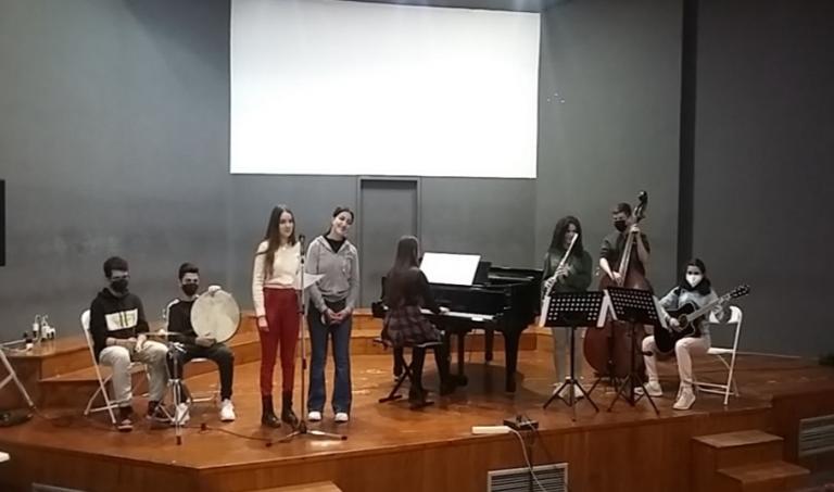 Τραγούδι και λαούτο: ο μαθητής Γ΄ Λυκείου Μοσχίδης Άγγελος-Σταύρος.