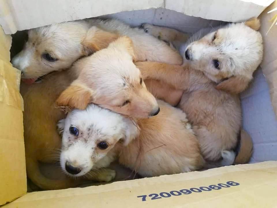 Τα σκυλάκια, που πετάχτηκαν από κάποιο ασυνείδητο δίποδο στους δρόμους, βρέθηκαν έξω από τα Πηγάδια και μεταφέρθηκαν από φιλόζωη στο Δήμο με την ελπίδα να βρουν προστασία.
