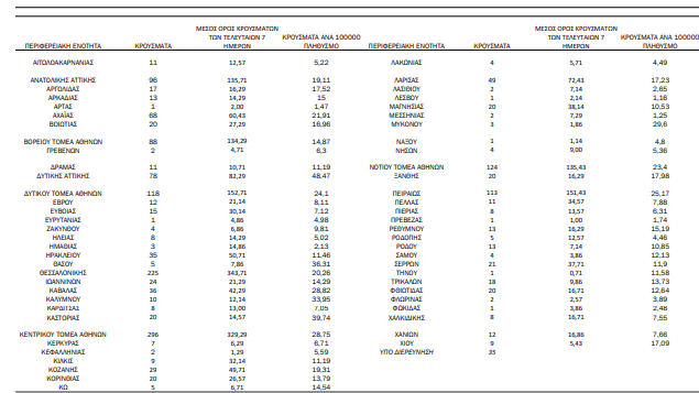 (ημερήσια μεταβολή +0.6%), εκ των οποίων 51.3% άνδρες. Με βάση τα επιβεβαιωμένα κρούσματα των τελευταίων 7 ημερών, 57 θεωρούνται σχετιζόμενα με ταξίδι από το εξωτερικό και 3.374 είναι σχετιζόμενα με ήδη γνωστό κρούσμα.