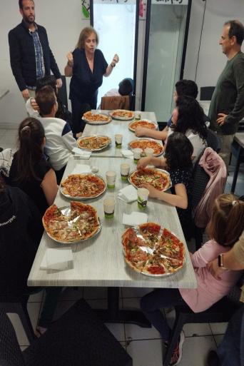 Οι μικροί μας φίλοι με πολύ ενθουσιασμό δημιούργησαν ο καθένας την πίτσα της αρεσκείας του σε μια επαγγελματική κουζίνα. Την αντιπροσωπεία των μαθητών συνόδευσαν εκπαιδευτικοί και η κοινωνική λειτουργός του σχολείου. Το μαγειρικό εργαστήριο αποτελεί ένα παράδειγμα καλής πρακτικής που δείχνει ότι η κοινότητα μπορεί να ενώνει δυνάμεις για την υποστήριξη και την ενδυνάμωση των ανθρώπων με αναπηρία, δημιουργώντας ένα πιο συμπεριληπτικό και ανθρώπινο περιβάλλον.