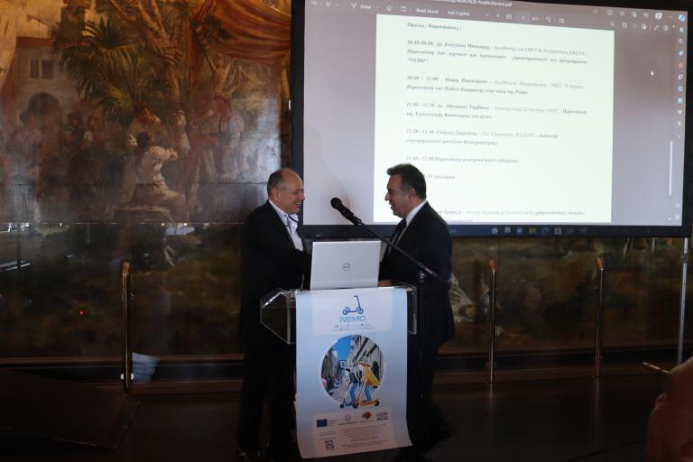 Στην ημερίδα του έργου «ΝΕΜΟ» με τίτλο: «Νέες και Ευέλικτες Μορφές ηλεκτρΟκίνησης στο Νότιο Αιγαίο», παρευρέθηκε και απηύθυνε χαιρετισμό ο Βουλευτής Δωδεκανήσου και Πρόεδρος της Επιτροπής Περιφερειών της Βουλής, κ. Μάνος Κόνσολας.