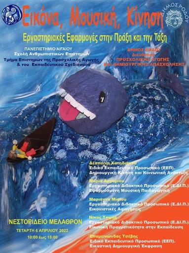 Με μεγάλη επιτυχία πραγματοποιήθηκε το εκπαιδευτικό, βιωματικό σεμινάριο με τίτλο Εικόνα Μουσική, Κίνηση και Εργαστηριακές Εφαρμογές στην πράξη και στην τάξη που διοργανώθηκε από τη Διεύθυνση Προσχολικής Αγωγής του Δήμου Ρόδου σε συνεργασία με το Τμήμα Επιστημών της Προσχολικής Αγωγής και του Εκπαιδευτικού Σχεδιασμού του Πανεπιστημίου Αιγαίου.
