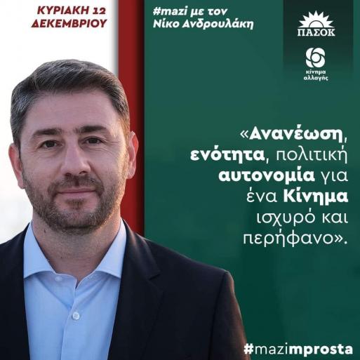 Ν. Ανδρουλάκης: Ζητώ από τους 270.000 πολίτες καθαρή εντολή ανανέωσης, ενότητας και πολιτικής αυτονομίας της παράταξης
