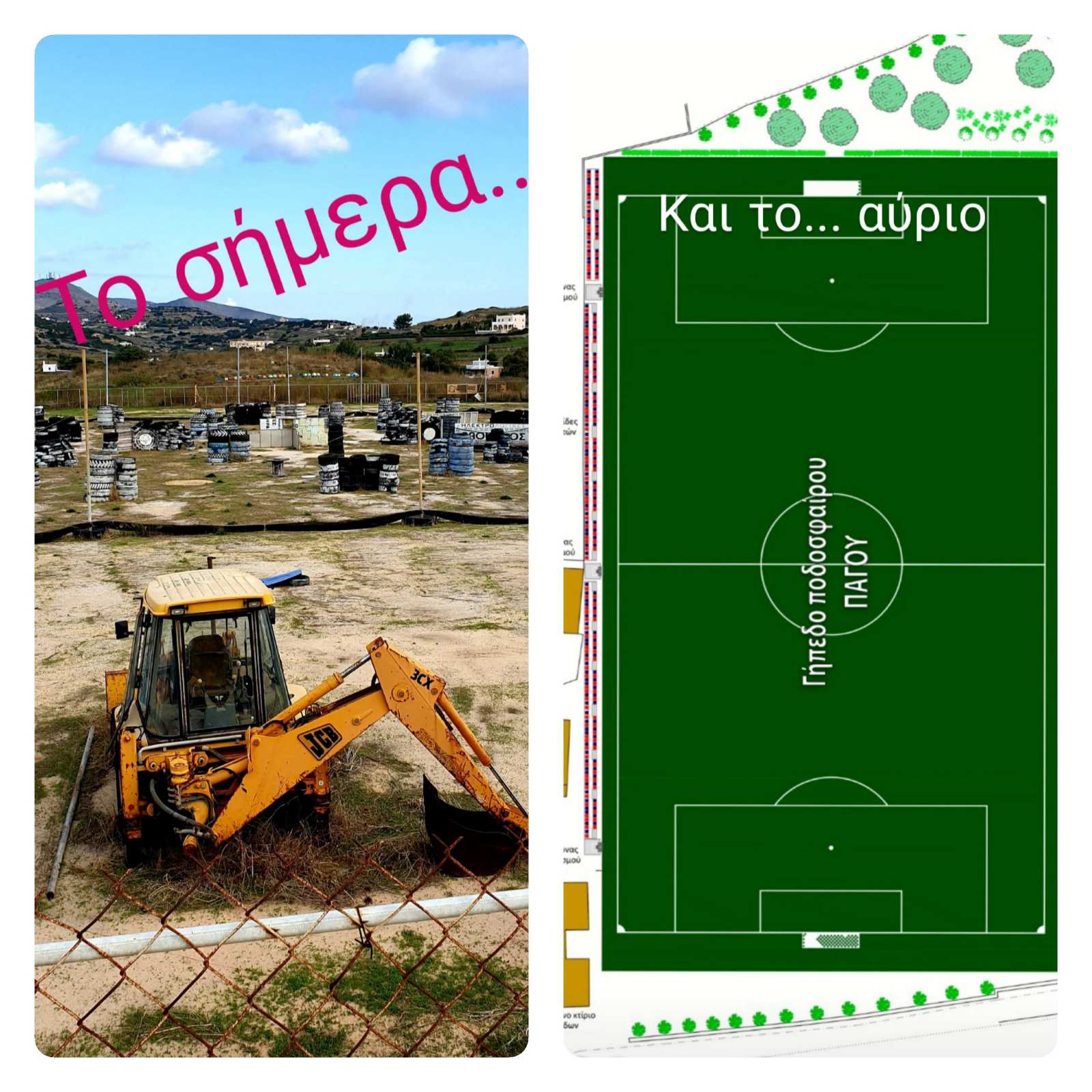 - Ξεκίνησαν σήμερα οι εργασίες για την πλήρη ανακατασκευή του γηπέδου ποδοσφαίρου στον Πάγο.