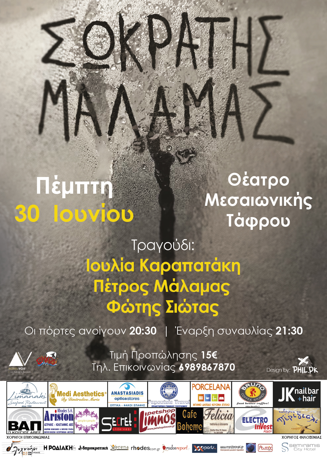 Πέμπτη 30 Ιουνίου στη Ρόδο στο Θέατρο Μεσαιωνικής Τάφρου.