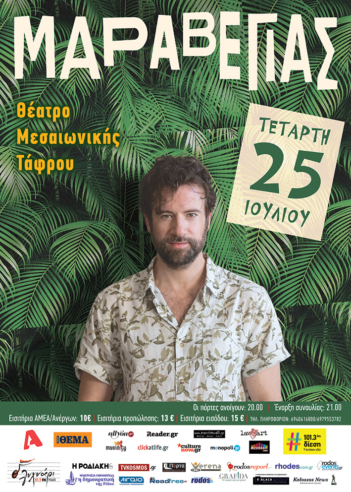 Και θα έχουμε τη μία και μοναδική ευκαιρία να ζήσουμε το μεγαλύτερο πάρτι του καλοκαιριού. Ο Κωστής Μαραβέγιαςστο Θέατρο Μεσαιωνικής Τάφρουστη Ρόδογια μία μεγάλη συναυλία! Πάρτε το κέφι σας, τους ανθρώπους σας, πάρτε λεωφορεία και τρένα, πάρτε το αυτοκίνητό σας και όσους κάνουν οτοστόπ και ελάτε να ζήσουμε ένα βράδυ από αυτά που γίνονται μία φορά και επανάληψη δεν έχουν.
