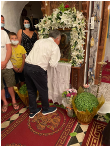 Στους Λειψούς παρευρέθηκε στην εορτή της Παναγίας του Χάρου ενώ ανήμερα των εννιάμερων της Παναγιάς με τον υφυπουργό Άμυνας Αλκιβιάδη Στεφανή μετέβησαν στους Αρκιούς όπου έγινε λειτουργία στην Παναγία Παντάνασσα.