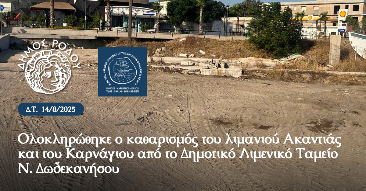 Μια μεγάλη επιχείρηση καθαρισμού ολοκληρώθηκε στο λιμάνι της Ακαντιάς και στον περιβάλλοντα χώρο του Καρνάγιου από το Δημοτικό Λιμενικό Ταμείο Νοτίας Δωδεκανήσου. Μπάζα, σκάφη, ναυπηγήματα και εγκαταλελειμμένα οχήματα που για πολλά χρόνια υποβάθμιζαν την εικόνα της περιοχής απομακρύνθηκαν οριστικά, δίνοντας νέα όψη στο λιμάνι.