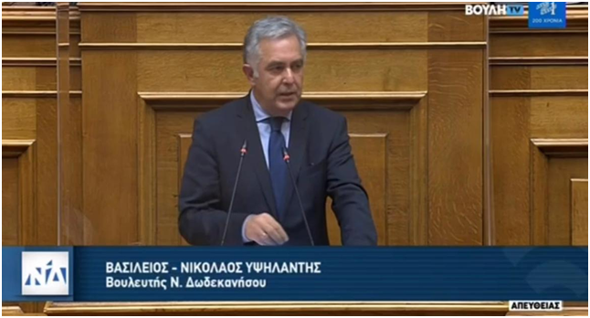 Ομιλία Βουλευτή Δωδεκανήσου Βασίλη Α. Υψηλάντη στην Ολομέλεια της Βουλής για το Νομοσχέδιο για τον Τουρισμό - Ζήτησε την προτεραιοποίηση της επίλυσης των θεμάτων της ΑΣΤΕΡ