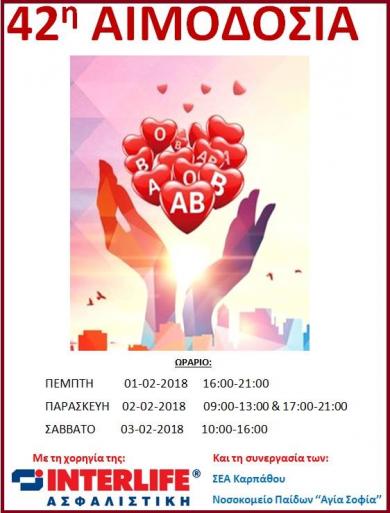 Με αφορμή αυτή την Παγκόσμια Ημέρα, ο Σύλλογος Εθελοντών Αιμοδοτών Ρόδου σε συνεργασία με το Σταθμό Αιμοδοσία του Γενικού Νοσοκομείου Ρόδου οργανώνει επί τόπου αιμοδοσία στο ισόγειο του Δημαρχιακού Μεγάρου Ρόδου την Παρασκευή 8 Μαΐου από 9π.μ. έως 1μ.μ.