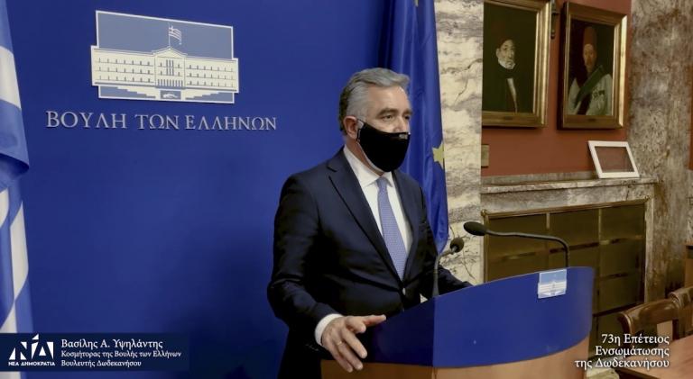 Ο Κοσμήτορας και Βουλευτής Δωδεκανήσου Βασίλειος Νικόλαος Α. Υψηλάντης εκπρόσωπος της Βουλής στην 73η Επέτειο της Ενσωμάτωσης της Δωδεκανήσου
