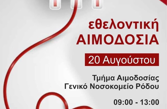 ΡΟΔΑΥΓΗ, Σύλλογος Εθελοντών Αιμοδοτών Ρόδου «Άγιος Εφραίμ», Λέσχη Lions Ρόδου, Σύλλογος ΠΑΜΕΑ και Σύλλογος Μεσογειακής Αναιμίας Ρόδου, σε μια μεγάλη πράξη ανθρωπιάς.