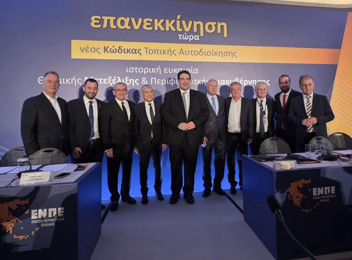 Ο Πρόεδρος της ΕΝΠΕ εξήρε το έργο του Υπουργού Εσωτερικών Θεόδωρου Λιβάνιου για τον νέο Κώδικα Αυτοδιοίκησης, τονίζοντας ότι η κωδικοποίηση άνω των 500 νομοθετημάτων αποτελεί μια σημαντική τομή που παρέχει καθαρούς κανόνες, σαφήνεια ρόλων και ενισχύει την εμπιστοσύνη. Ξεκαθάρισε όμως ότι για την ΕΝΠΕ «αυτό είναι η αρχή. Και αφορμή επανεκκίνησης» και επανέλαβε ότι η ΕΝΠΕ έχει σταθερά θέσει ως στρατηγικό της στόχο τη μετάβαση στην Περιφερειακή Διακυβέρνηση, ένα μοντέλο που ισχύει σε όλη τη Δυτική Ευρώπη και αποτελεί συστατικό στοιχείο του δημοκρατικού κεκτημένου.