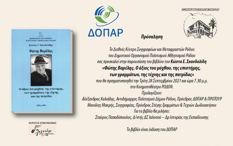 την Τρίτη 28 Σεπτεμβρίου 2021 και ώρα 7.30 μ.μ. στο Κινηματοθέατρο Ρόδον.