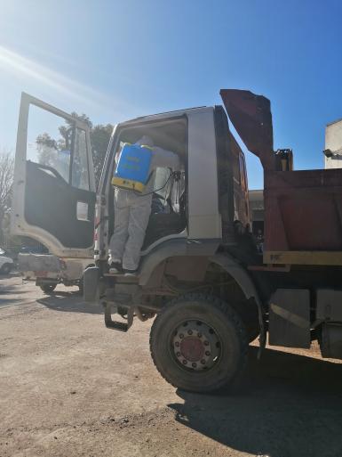 - Σε πλήρη απολύμανση των οχημάτων και των μηχανημάτων του Δήμου Ρόδου ξεκίνησε σήμερα, η Διεύθυνση Τροχαίου Υλικού, υπό την επίβλεψη του αντιδημάρχου Πολιτικής Προστασίας, Επιχειρηματικής Ετοιμότητας και Δημοτικών Ενοτήτων Καμείρου και Αταβύρου Νεκτάριου Φλοσκάκη.