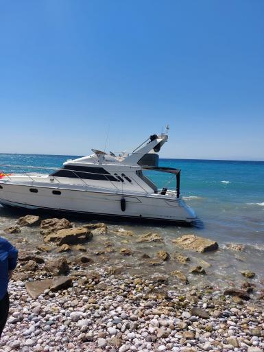 Μάλιστα στην προσπάθεια του να προσεγγίσει την ακτή, προσάραξε στα βράχια, μπροστά από το ξενοδοχείο Nautica Blue.