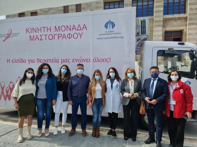 ΔΕΛΤΙΟ ΤΥΠΟΥ-Η κινητή μονάδα μαστογράφου της Ελληνικής Αντικαρκινικής Εταιρείας συνεχίζει δυναμικά και στρατευμένα το «Πρόγραμμα ευαισθητοποίησης και έγκαιρης διάγνωσης του καρκίνου του μαστού» και την εβδομάδα που μας πέρασε, από τις 1-5 Νοεμβρίου 2021, βρέθηκε στο νησί της Ρόδου, όπου με τη συνεργασία του τοπικού Παραρτήματος της Ε.Α.Ε., το Δήμο Ρόδου και το Κέντρο Κοινότητας του Δήμου Ρόδου, πραγματοποίησε δωρεάν 158 μαστογραφικούς έλεγχους σε γυναίκες ηλικίας 40 έως 70 ετών.