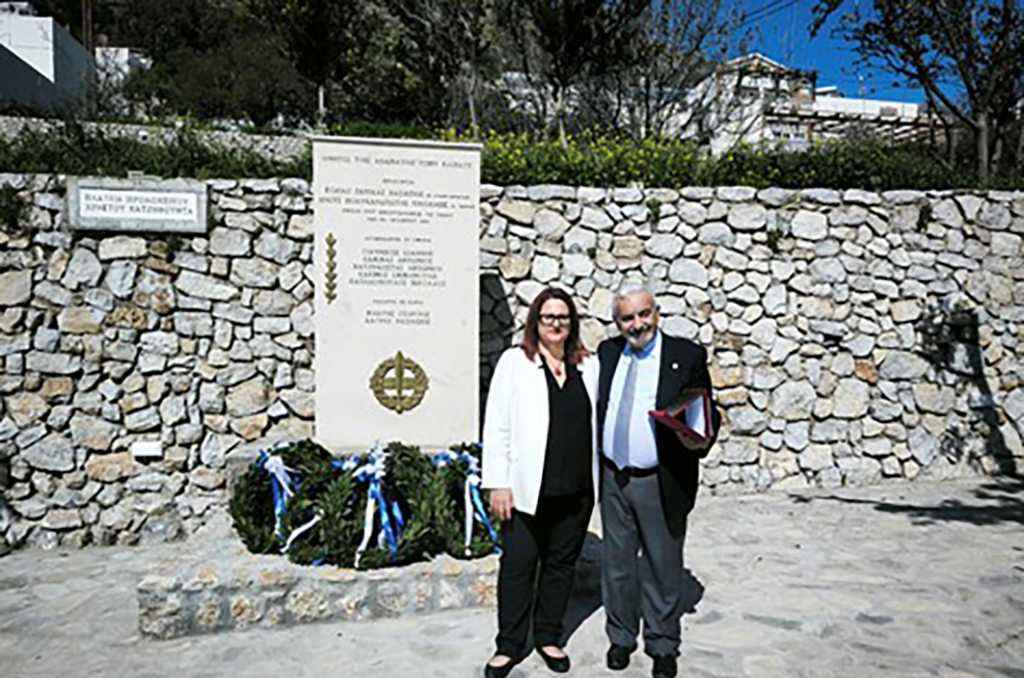 Στο τέλος της παρελάσεως, επέδωσε στην Αξιότιμη Δήμαρχο της νήσου, Τιμητική Πλακέτα.