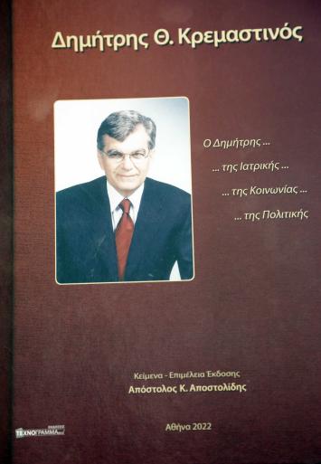 Το βιβλίο με τίτλο «Δημήτρης Κρεμαστινός, ο Δημήτρης…της Ιατρικής…της Κοινωνίας…της Πολιτικής» προσέφεραν στον Πρόεδρο της Βουλής, κ. Κωνσταντίνο Τασούλα, η σύζυγος του εκλιπόντος πρώην Υπουργού και Αντιπροέδρου της Βουλής Δημήτρη Κρεμαστινού που απεβίωσε στις 8 Μαΐου 2020.
