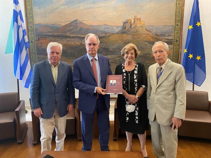 Μαζί με την κ. Τζένη Κρεμαστινού, τον Πρόεδρο της Βουλής επισκέφθηκαν ο συγγραφέας του βιβλίου κ. Απόστολος Αποστολίδης και ο εκδότης κ. Εμμανουήλ Στεφανάκης, οι οποίοι προσέφεραν αντίτυπα της έκδοσης και για τη Βιβλιοθήκη της Βουλής, καθώς το έργο δεν διατίθεται προς πώληση.